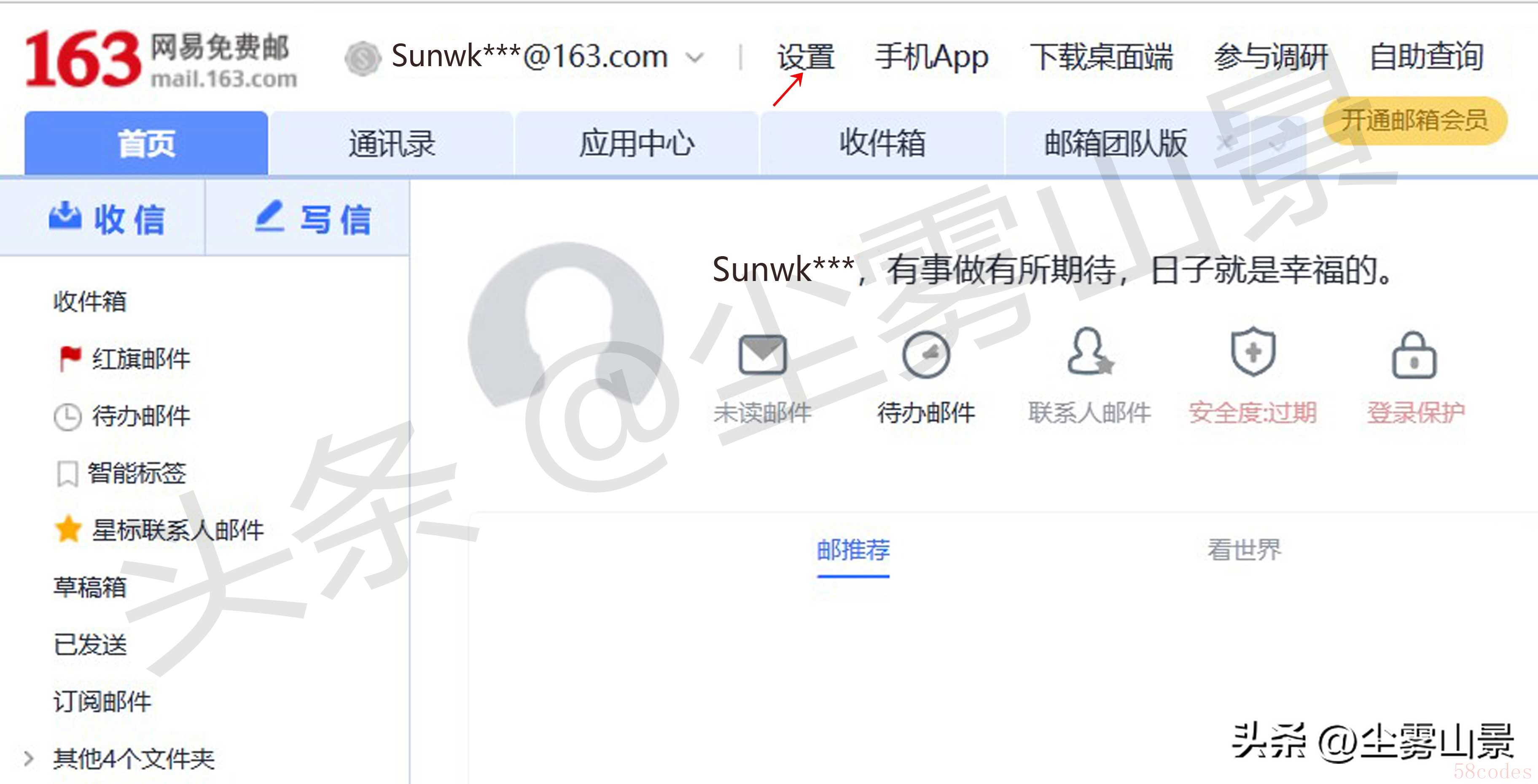 3、点击图3邮箱页面上方的“设置”,切换为图4,