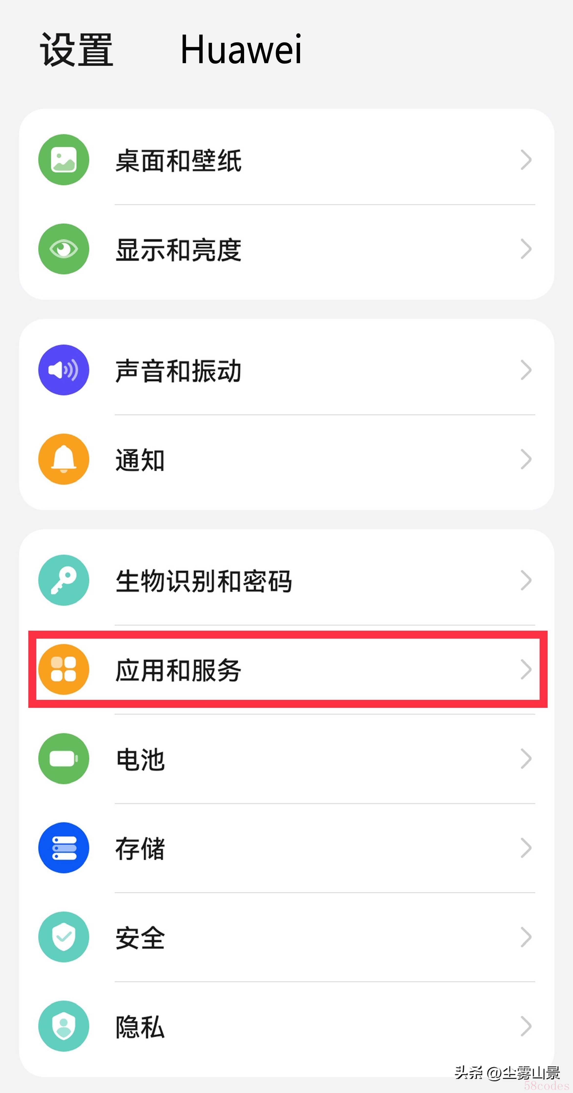 2、手机B⑴打开手机“设置”,点击“应用和服务”,见图13。