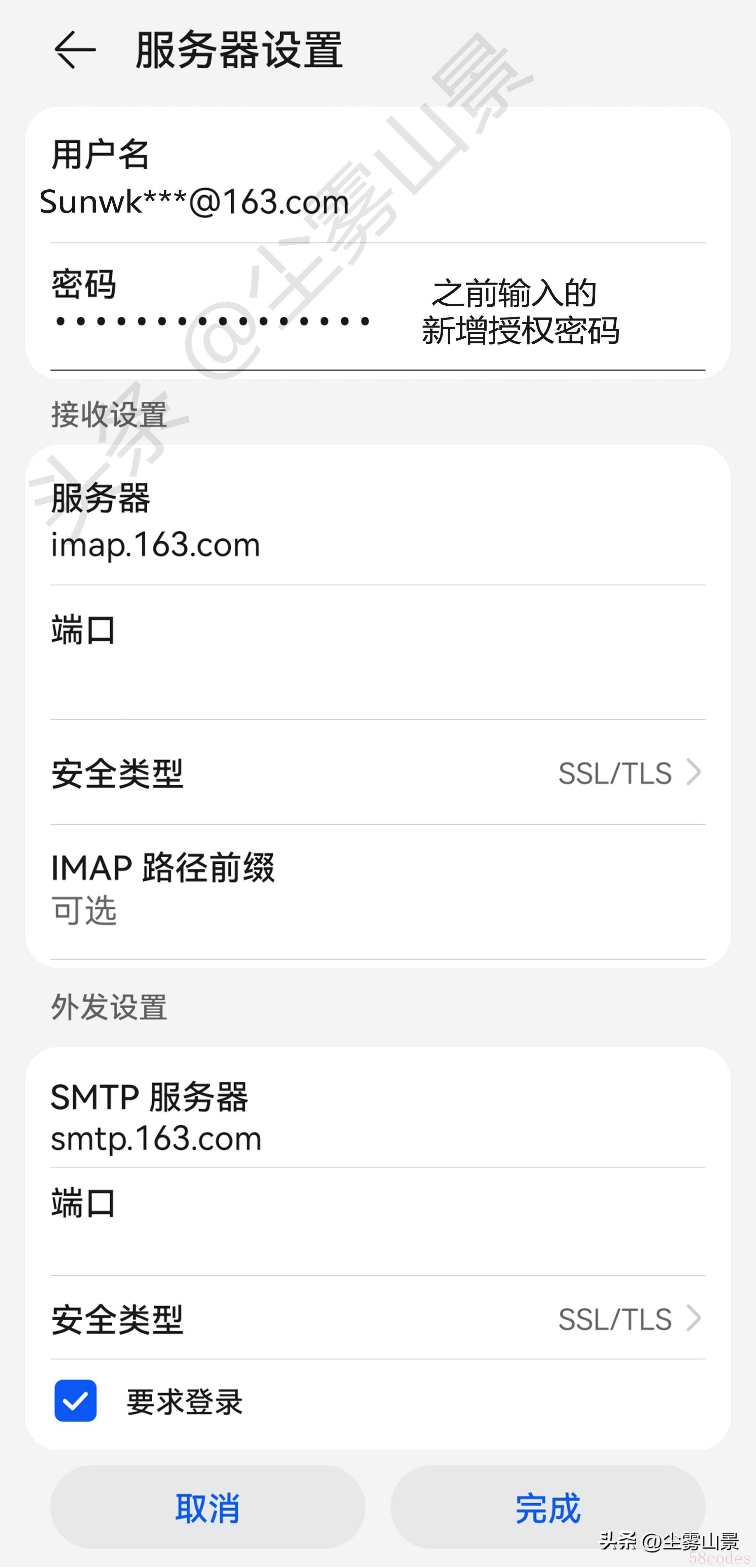 ⑹在图12,点击“完成”,手机即可利用在电脑端注册的免费邮箱、发送电子邮件,并可与电脑端电子邮箱同步接收电子邮件,见图12。