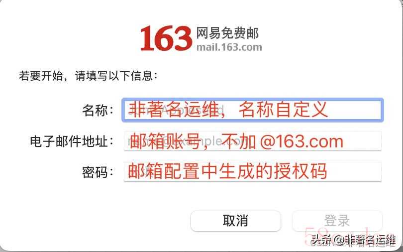第三步:在第三方邮箱APP中添加邮箱账户(这里以MacOS的邮箱APP为例,其他系统登陆方法都是一样的)