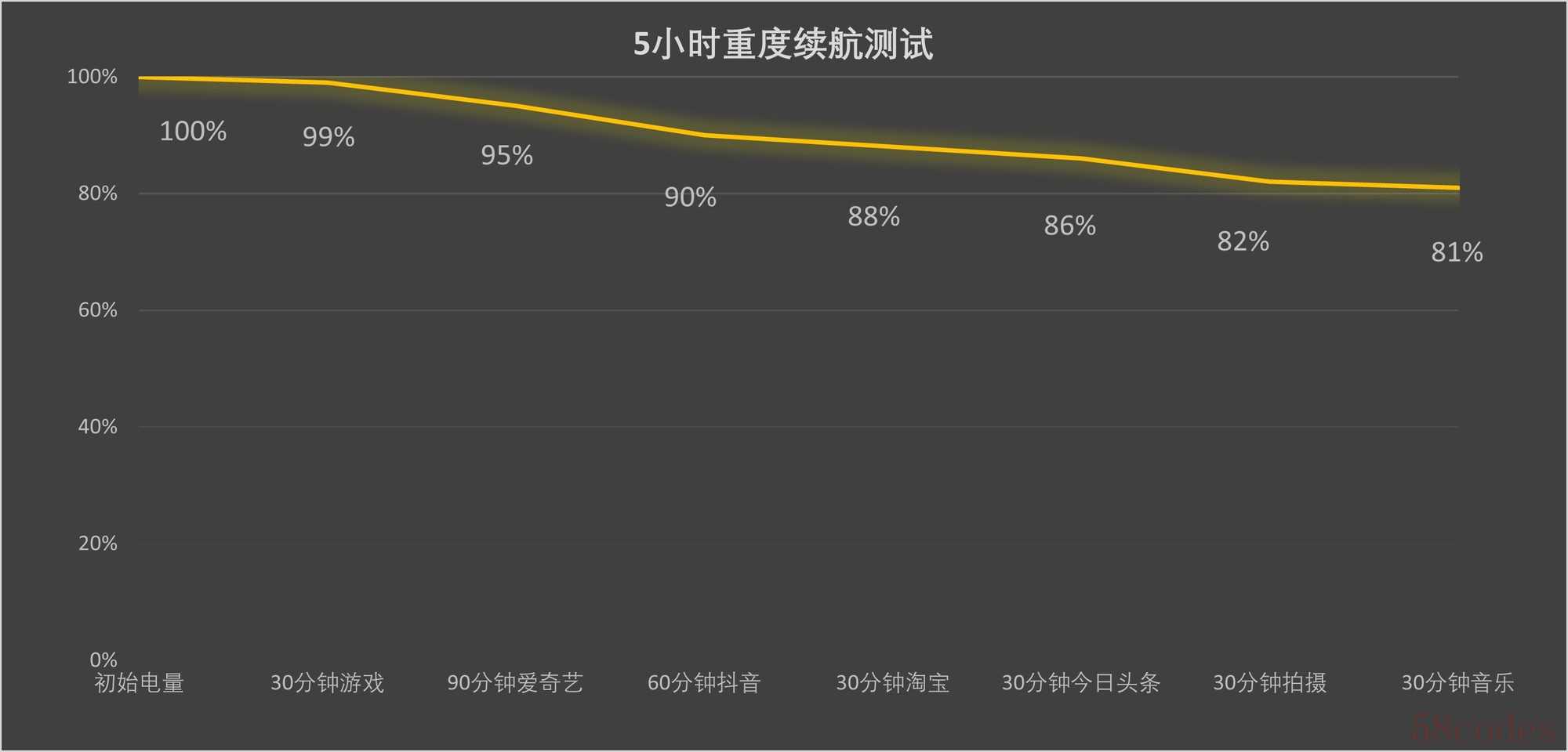 荣耀500 Pro的续航表现堪称“续航焦虑终结者”,其内置的8000mAh青海湖大电池具备15%超高硅含量以及915Wh/L 超高能量密度,结合自研能效芯片HONOR E2带来了远超同定位机型的续航表现。经过实测在ZOL 5小时重度续航测试模型中,荣耀500 Pro取得了剩余电量81%的惊人成绩。