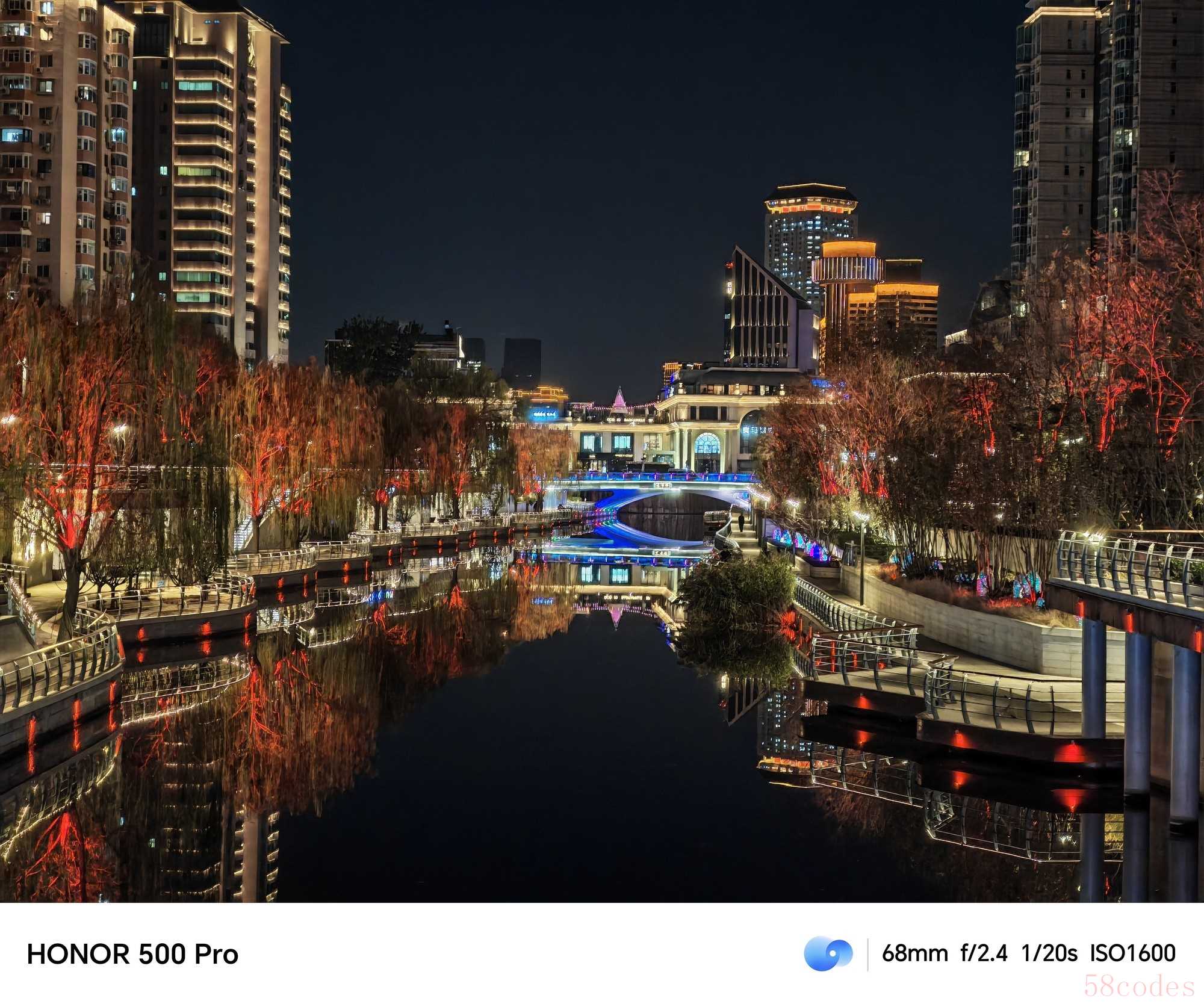 荣耀500 Pro还搭载了荣耀自研SOIS防抖方案,支持AI自适应防抖模型,主摄抖能力达到 CIPA5.0级水平。因此,荣耀500 Pro在拍摄拍摄夜景等暗光场景时的成像能力大幅提升,可以轻松拍摄画质清晰细腻的夜景照片。