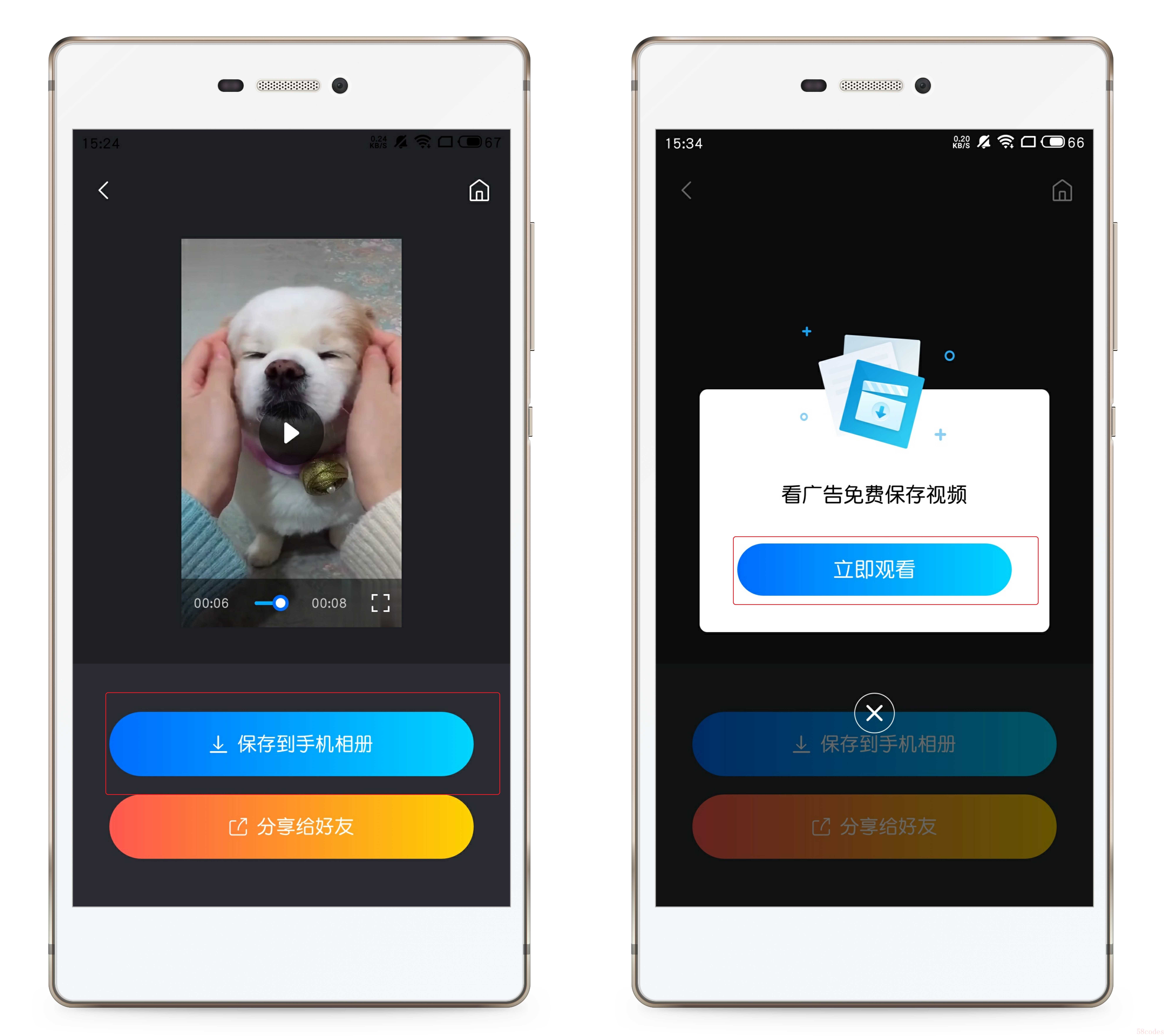 等待几秒后,视频中的水印就被去除了,可以先预览一遍,然后点击【保存到手机相册】;此时会提醒你开通会员,我们直接返回,选择看广告免费保存视频。