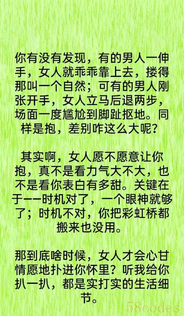 与其说这是一个“技术活”,不如说这是一个需要"观察、理解和尊重"的过程。以下是一些女性可能更愿意接受男性拥抱的情境,以及相关的要点: