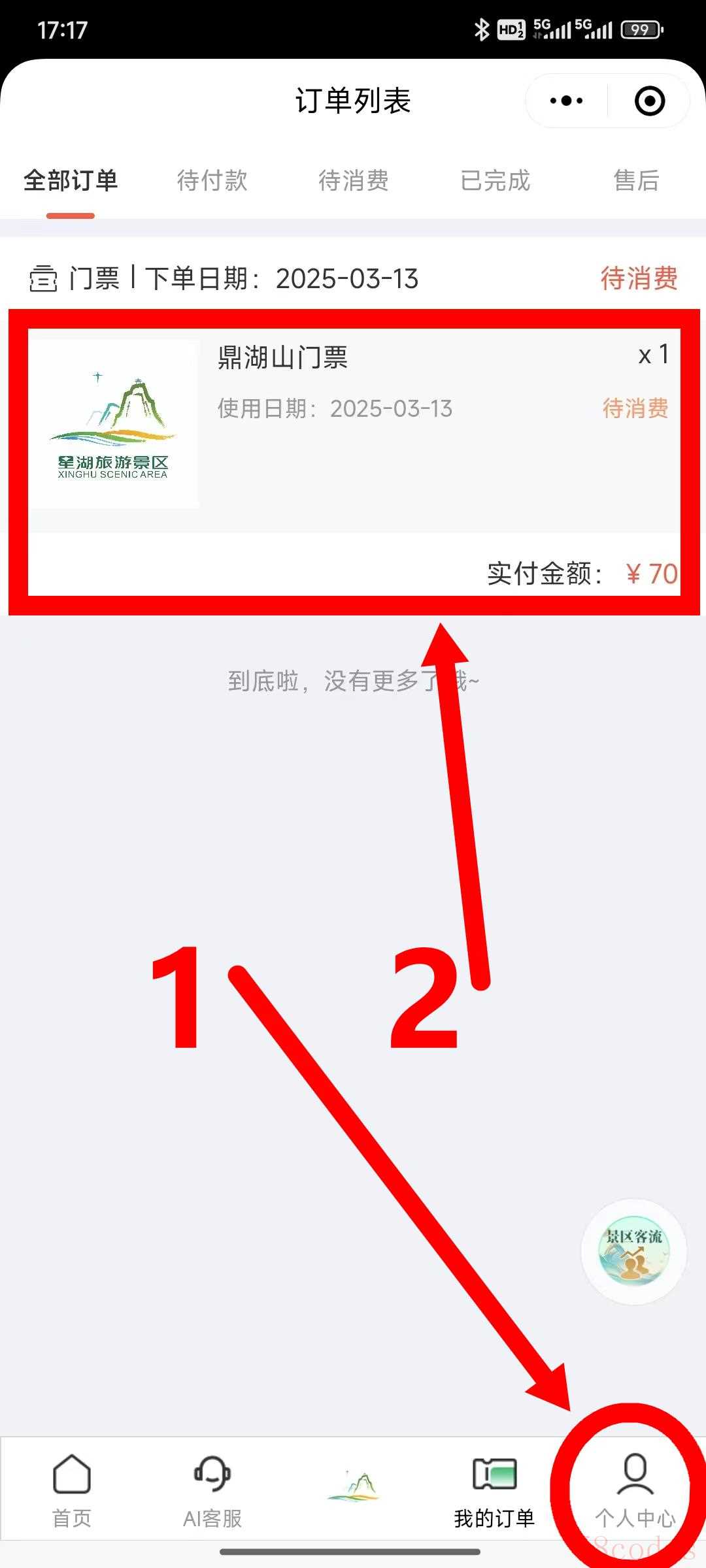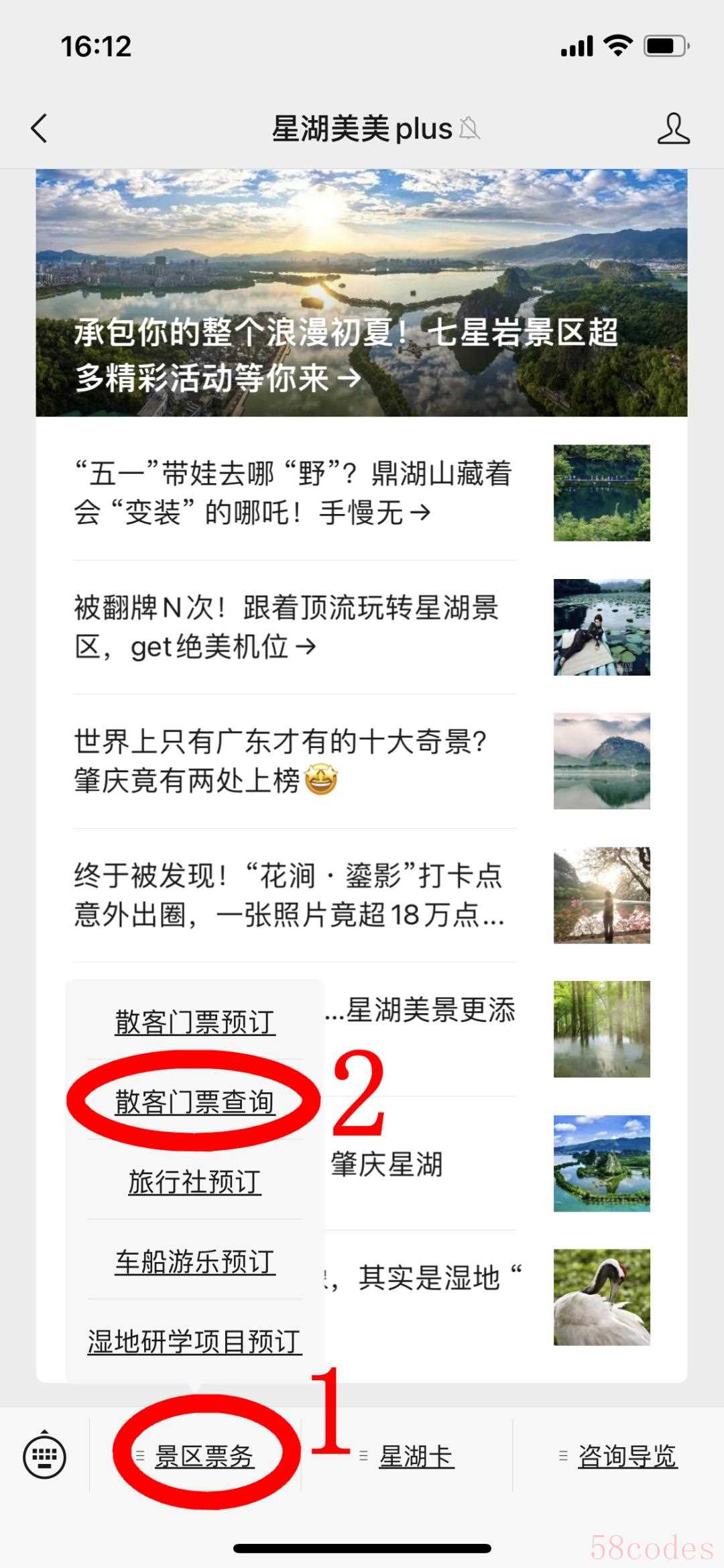 ▶进入“星湖美美plus”,点击“景区票务”——“散客门票查询”: