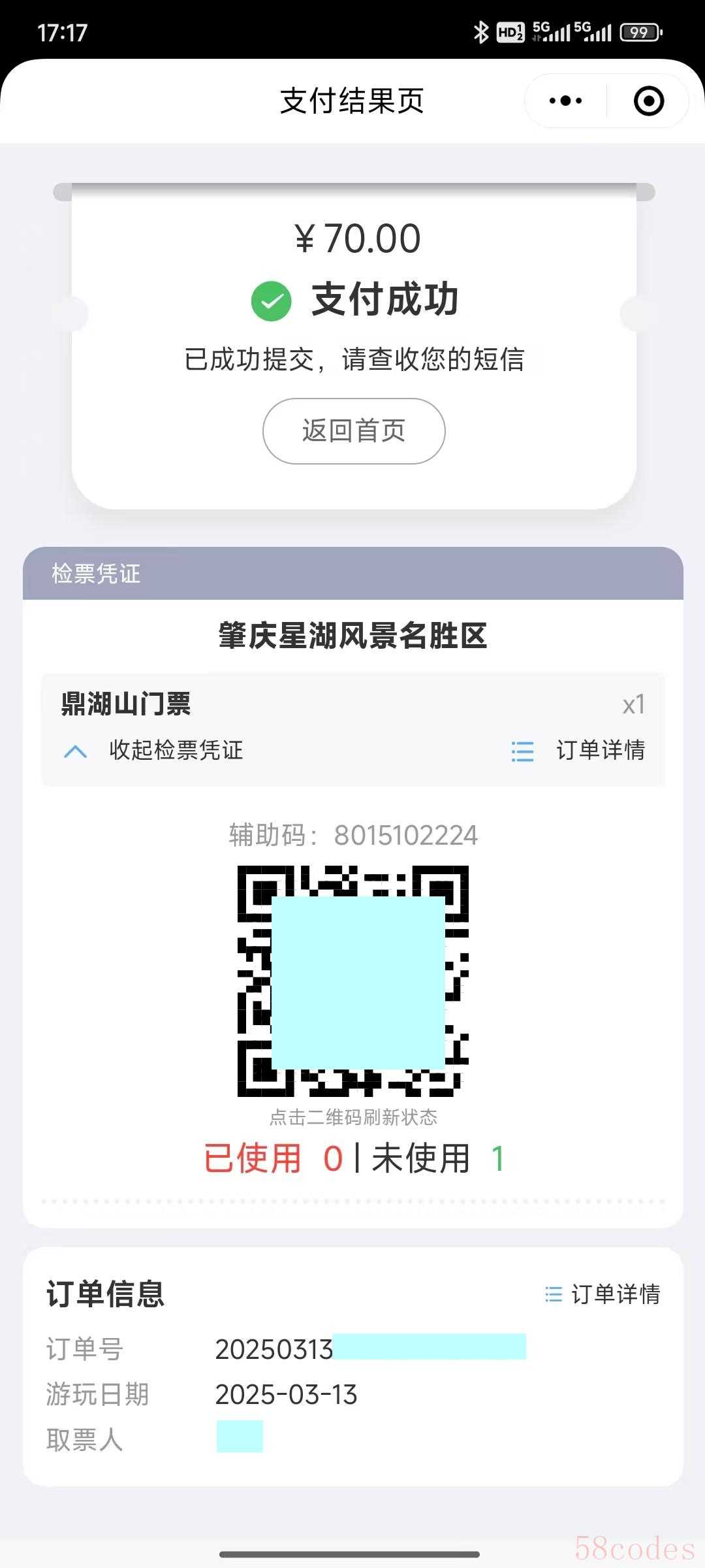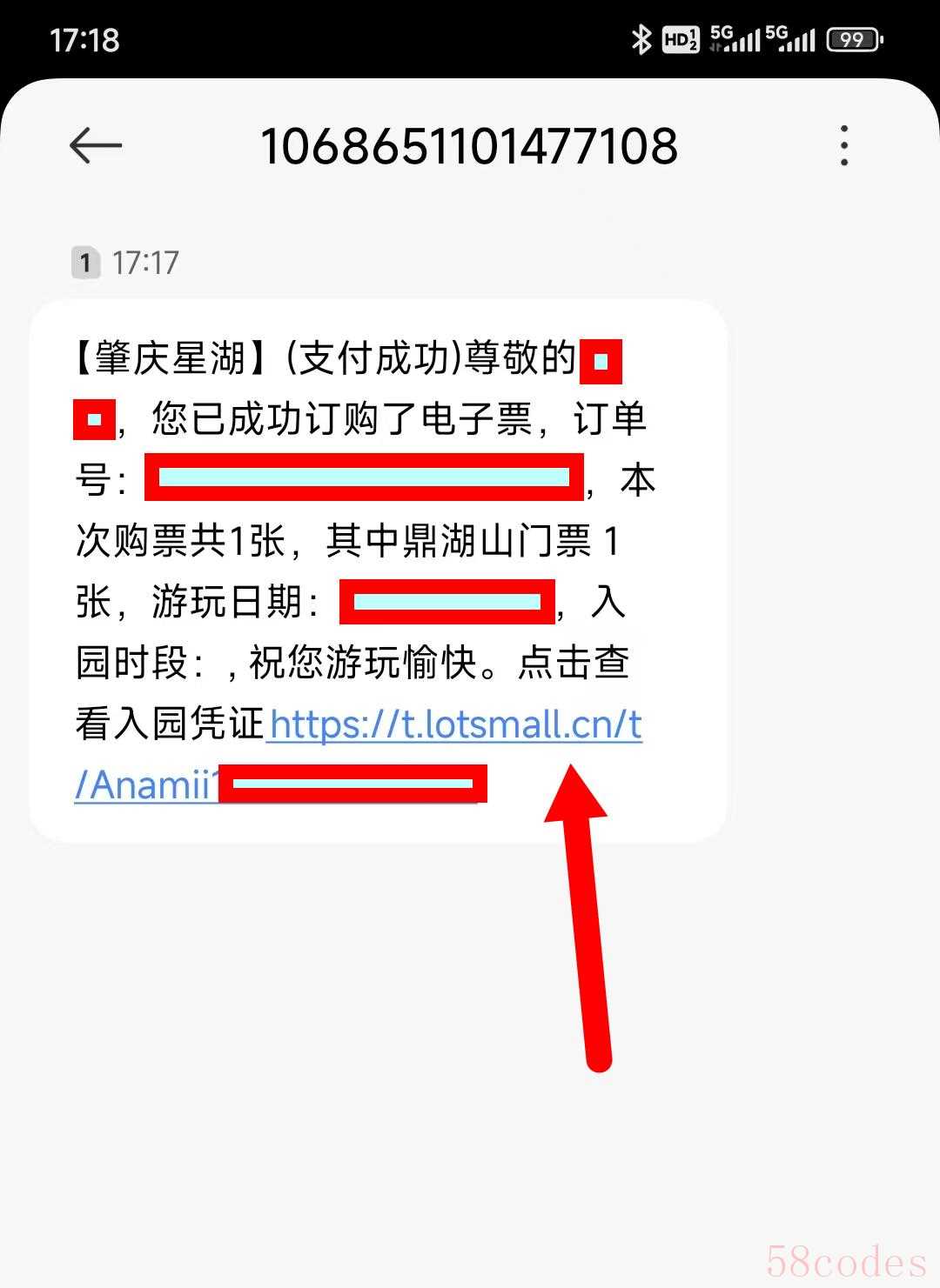 ▶打开手机短信,找到【肇庆星湖】发送的信息,点击链接即可下载门票二维码: