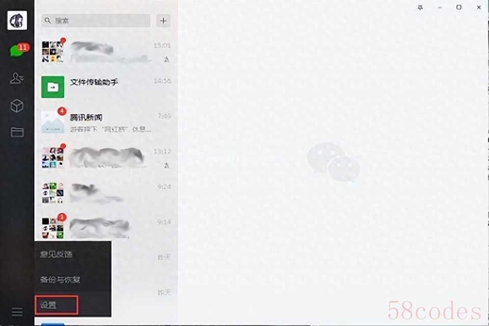 1、首先我们打开电脑版的微信,并点击左下角的菜单按钮并选择“设置”;