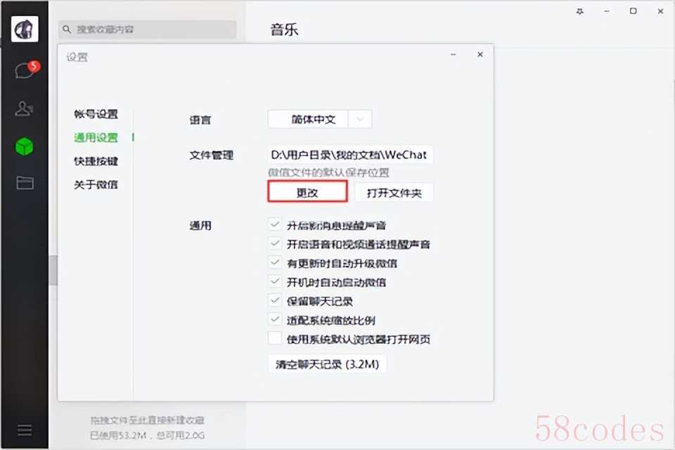 3、最后在通用设置里的文件管理,我们就可以看到微信下载文件的默认保存位置,如果你想改变位置的话,也可以通过“更改”按钮来变。