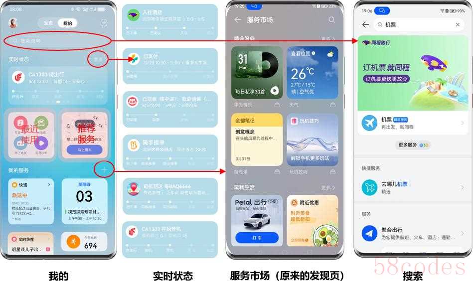 路径三:同样进入服务市场后,在服务市场的搜索框里输入上述关键词,也能快速找到并添加至负一屏。