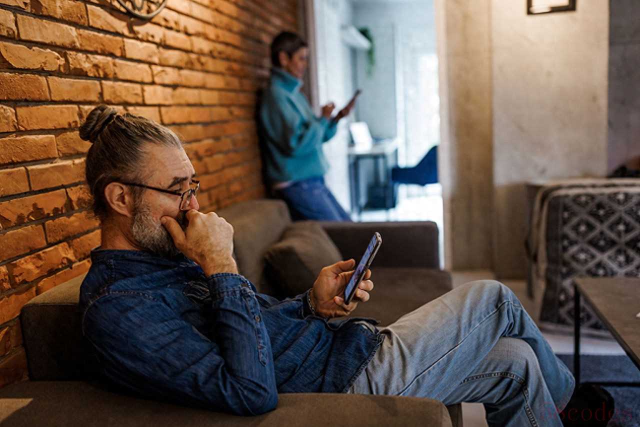 夫妻双双沉迷于手机,而缺少互相的关注。视觉中国|图