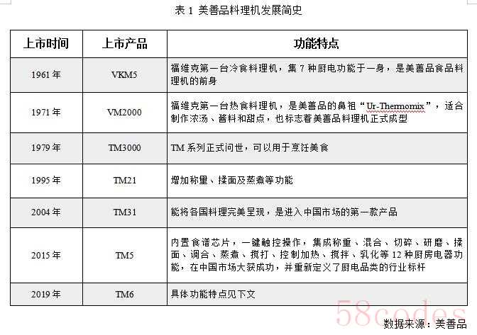 没有我们在家电市场上经常能看到的“高端占位”机型,也没有“低价战斗机”去阻击低端市场,更没有什么不同定位的产品去打动不同的消费者,美善品仅靠售价高达10988元的TM5这一款产品,一招致胜,就牢牢抓住了高端料理机用户的胃,也牢牢抓住了他们的心。它不但成为全球超过700万用户的厨房好伙伴,更成为一些米其林星级主厨的秘密武器。而这一招致胜的秘诀,从这一张《美善品料理机发展简史表》上,也可以窥见一斑——自1961年开始到今天近六十年的时间,美善品六十年磨一剑,不断把同一款产品迭代升级。而在升级过程中,没有可模仿参照的对象,只能是围绕客户需求,对技术、产品和服务不断创新。