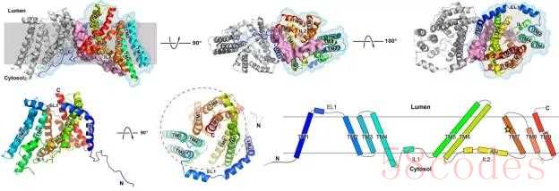 剩下的TM2-TM9以及胞内卷曲IL1/IL2在内质网膜中形成一个帐篷形状的结构,其中心有一个很大的疏水空腔。