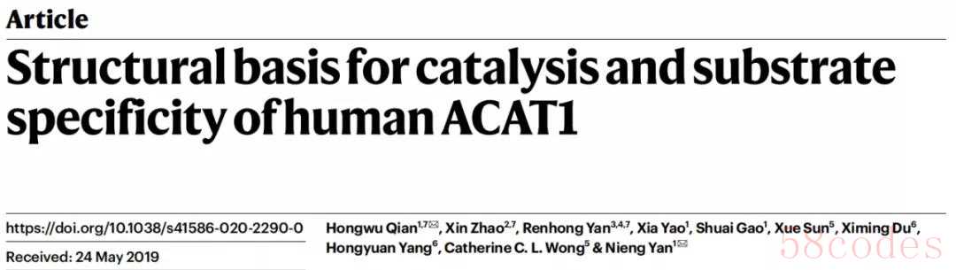 此外,普林斯顿大学颜宁教授课题组还在同期Nature中发表文章“Structural basis for catalysis and substrate specificity of human ACAT1”。