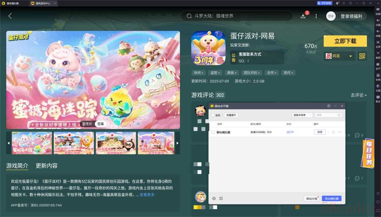 蛋仔派对是一款欢乐的多人竞技游戏,适合与朋友一起游玩。雷电模拟器的多开功能可以让玩家同时登录多个账号,方便组队或刷任务。此外,模拟器的智能按键映射功能可以优化跑酷操作,让跳跃、翻滚等动作更加精准,帮助玩家在派对赛中轻松获胜。