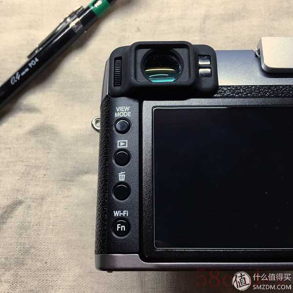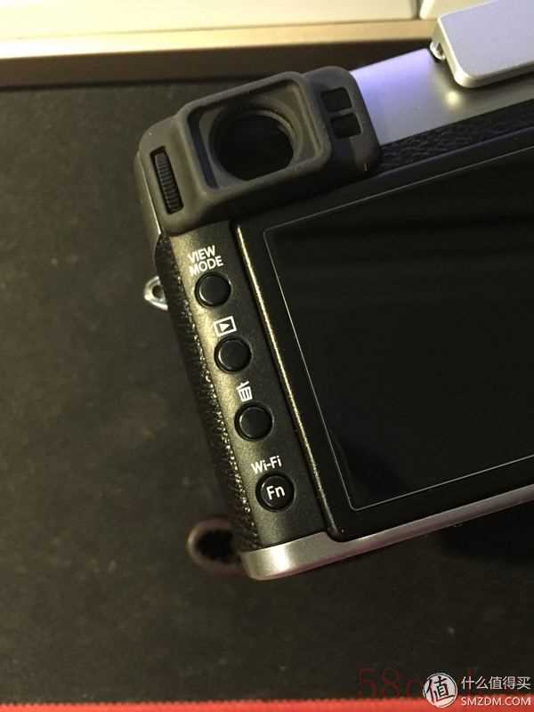 △左边的按键是在光滑的面板上。取景器有感应功能,眼睛贴近的时候会自动关闭屏幕。哦对了,这个取景器还可以调为画中画模式,也即当你使用取景器的时候,取景器内的右下角会弹出一个迷你的电子取景区域,可以放大对焦区域,从而实现精准的手动对焦。