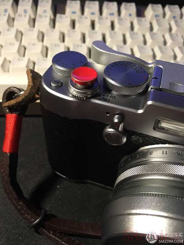 △快门豆和手柄。前文我提到了手柄有色差,我看到有些人晒黑色手柄,似乎感觉也还不错(X100T也有纯黑的配色)。快门豆也有很多颜色可以选择,我选的这个是有点下凹的风骚的红色,到现在用了大概4个月不到,周围已经掉漆了,露出了黄铜,可我觉得不但不难看,反而更添一抹历史感和复古感。(不过快门豆好像还蛮容易掉的,现在每次使用前我都会拧一拧,因为有一次我在爬山的时候快门豆掉了……还好,掉在阶梯上又被我捡回来了,总觉得是一件很危险的事。。。)