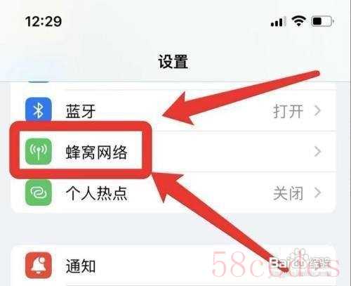 2. "向下滚动并点击“蜂窝网络” (Cellular / Mobile Data)。"