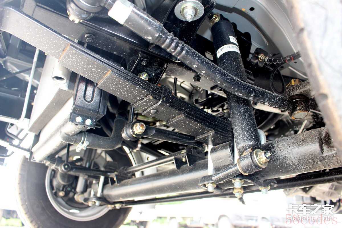 为保证承载性能的发挥,该车采用了前6后7+6片高钢性主副板簧,并且对主簧进行了加宽加厚设计,据测量,主簧最厚达0.9公分。这个强悍的悬挂在微卡里并不多见,因此它也是能够轻松应对大载重和特殊路况的。
