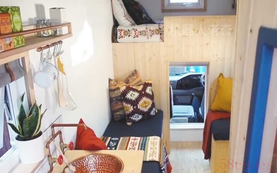 额头大床虽上下有点不便,但更清静,旁边小窗户更是画龙点睛,观察与透气两不误。改装房车就是这么简单,摒弃那些华而不实,让经济实用重新回归。