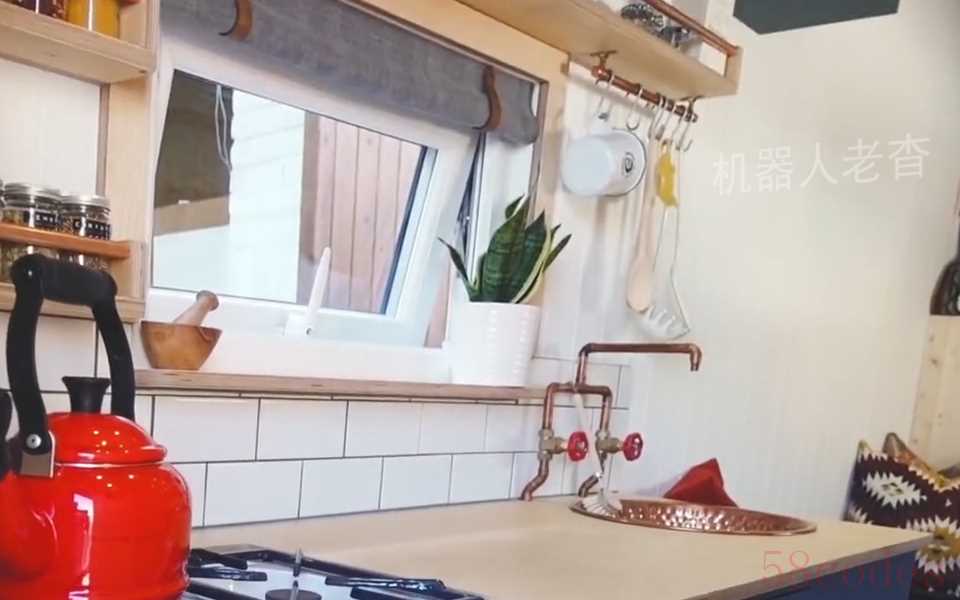室内左边是个柜台,有厨具、自来水,可以在上面做饭、吃饭、喝茶等。