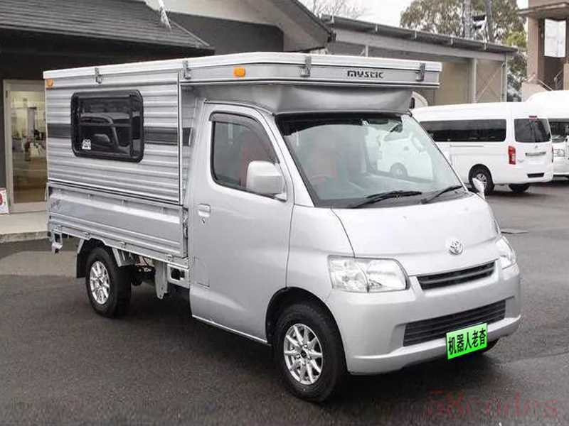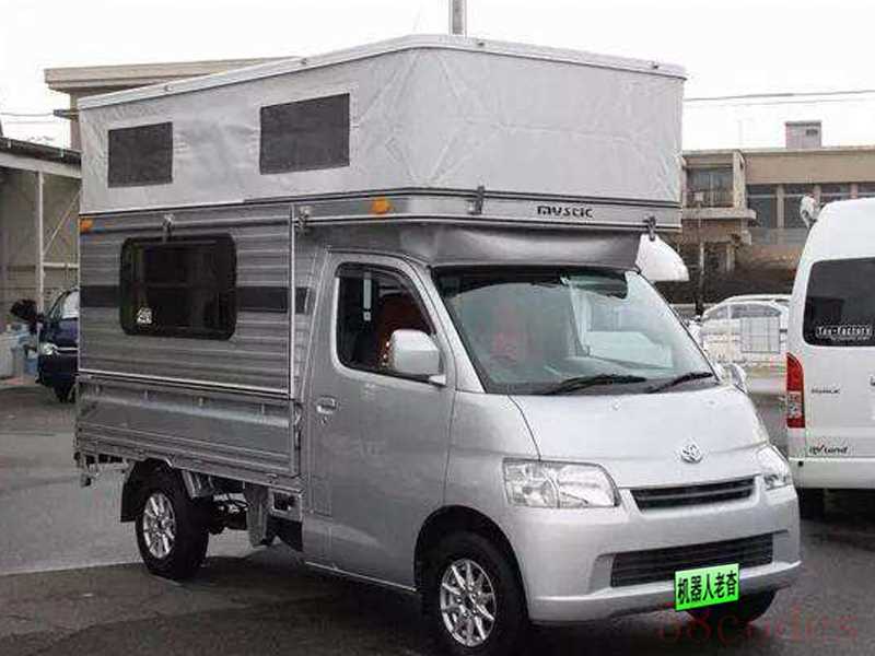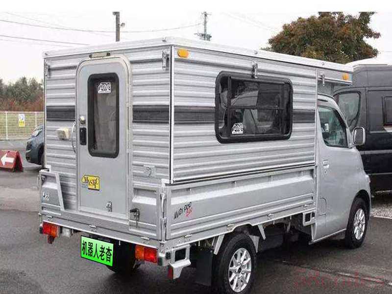 房车空间的大小取决于微卡车箱的长宽和限制的载货高度,两侧可开窗,车门一般设置在尾部,需要有外部挂梯才方便上下,车厢与驾驶室一般不能打通。