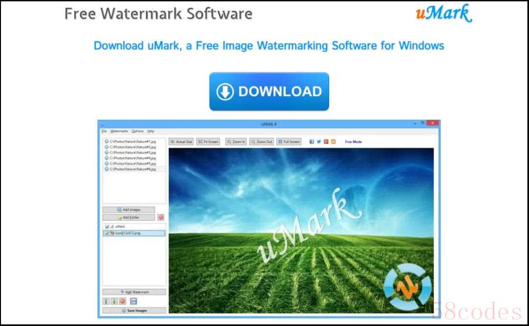 02 uMarkuMark是一款照片水印工具和视频水印工具,允许将图片和视频都加上水印。软件提供强大的批量处理功能,可自动快速对大量图片添加水印处理,除了一般常见的水印选项外,还能把二维码或其他图片形状加到照片上。