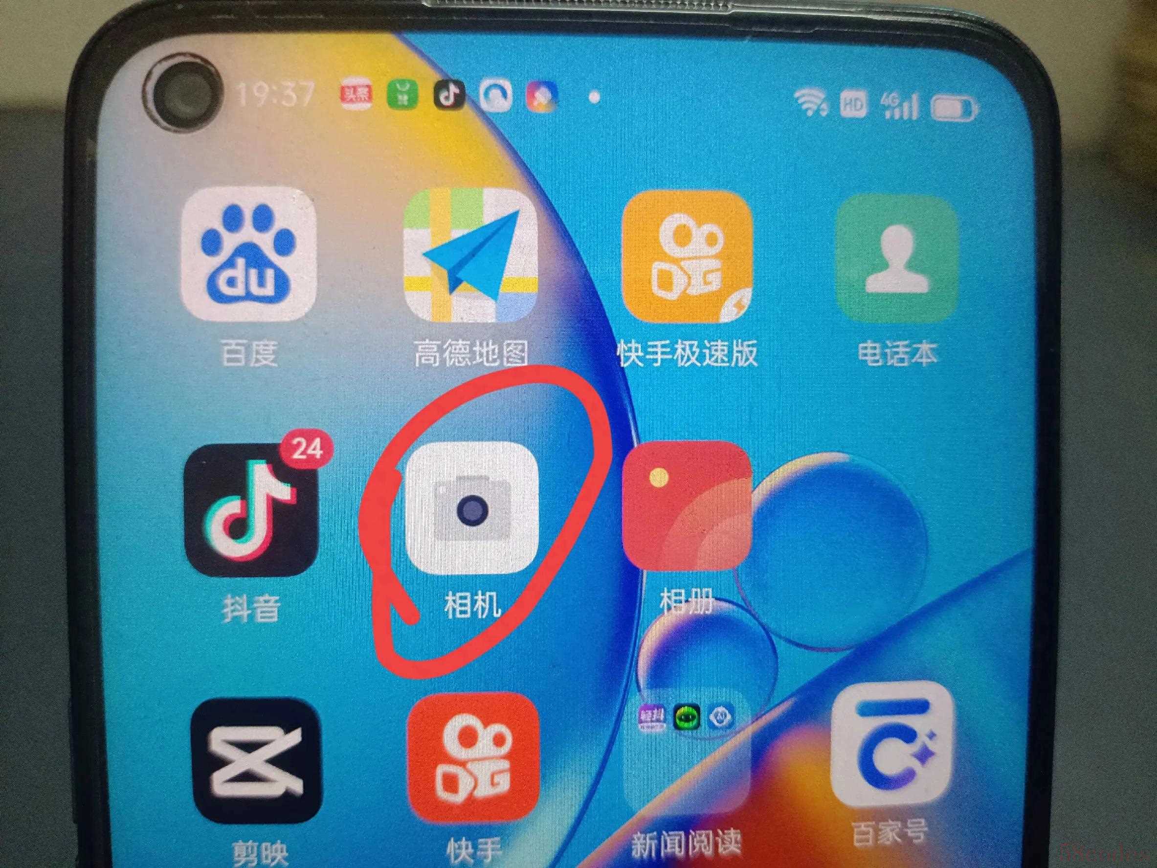 首先,打开手机里的相机,(如上图所示)