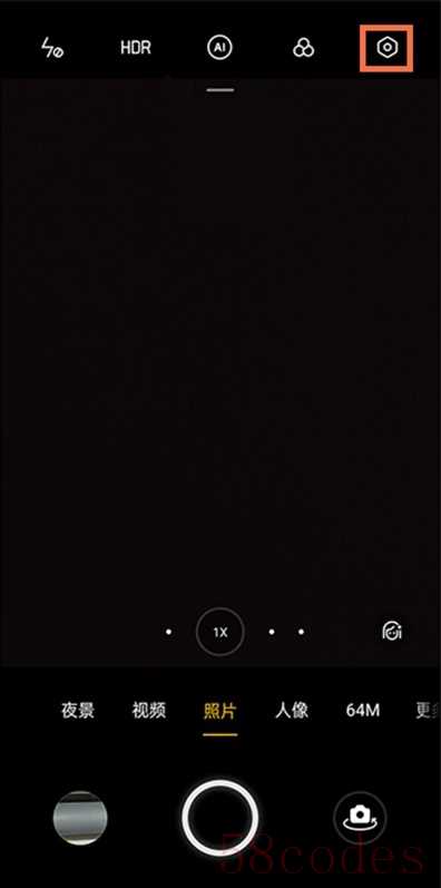 1、在桌面上打开相机app,在拍照页面点击右上角的设置图标。