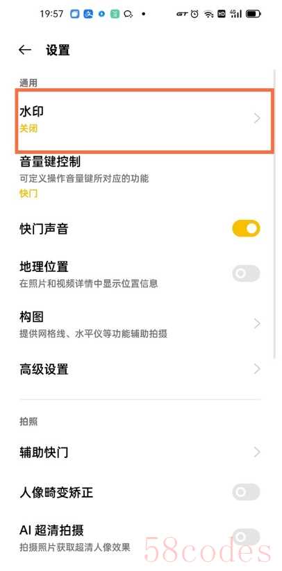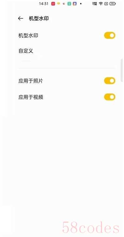 5. "在这里,你应该能看到“添加水印”或“机型水印”的开关。"