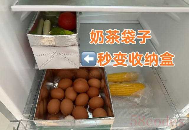 用奶茶袋裁剪、折叠后变成收纳盒,把食材分类整理得井井有条,轻松一目了然。