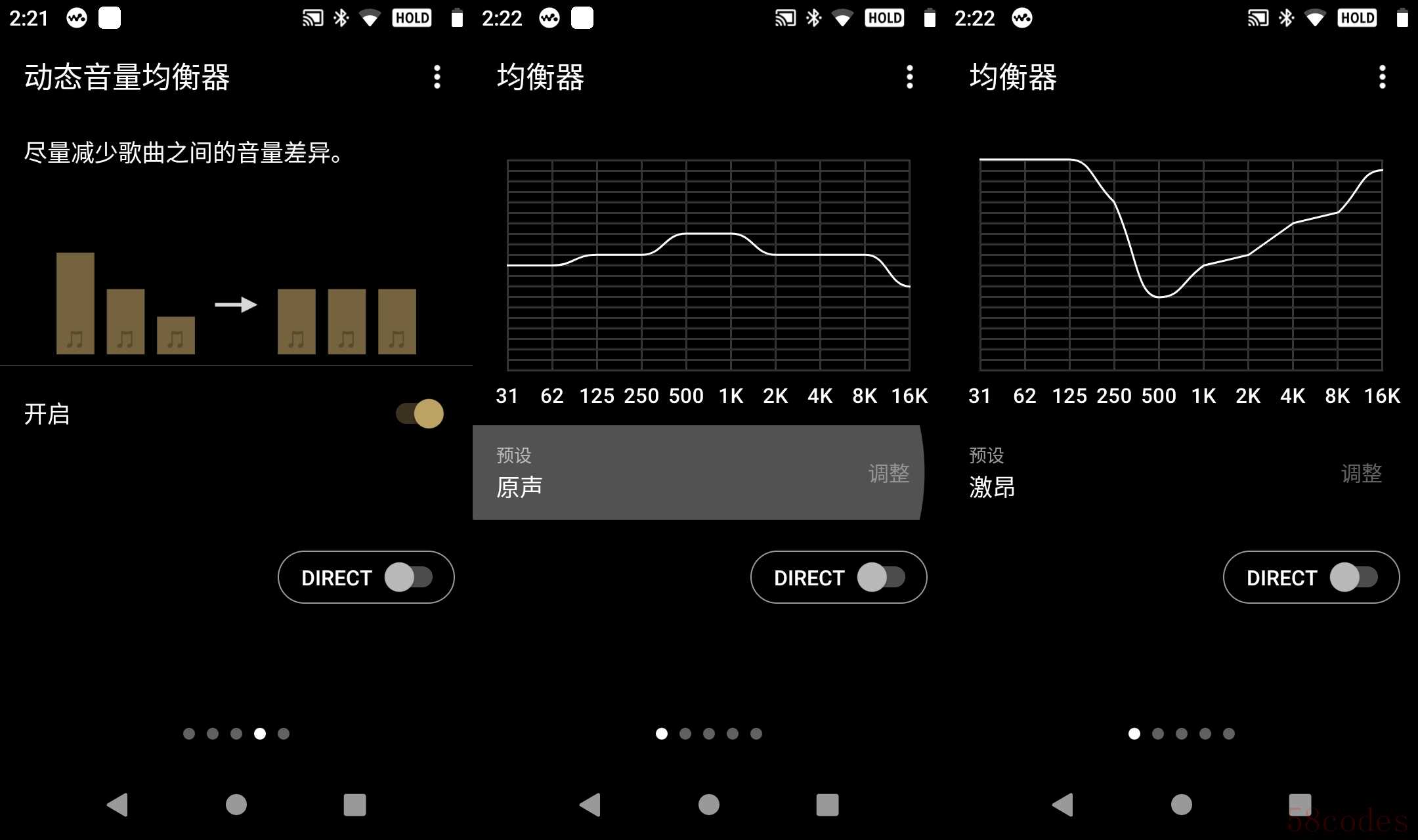 实际体验下来,个人感觉在开启动态音量均衡器后,歌曲的音量输出会变得更加均匀。而将均衡器的音效调为激昂时,效果最为明显,你会感觉声音会向前靠拢,低频部分得到了进一步增强,其他几个音效变化不是太大,普通用户很难听出差异。