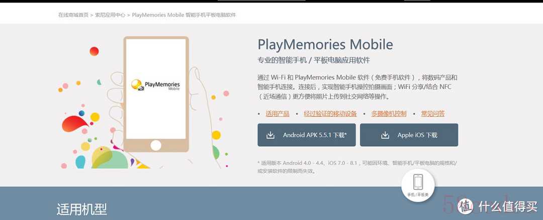 1、安装playmemories,根据手机系统类型选择安卓或苹果版本,下载地址