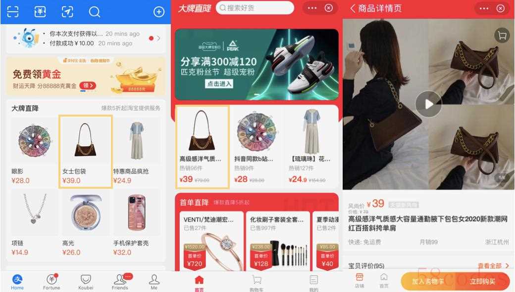 这两张来自支付宝登录界面的推广广告向我们揭示了假货在淘宝平台的盛行,每一季这些商家都能紧跟奢侈品牌的脚步同步更新商品.