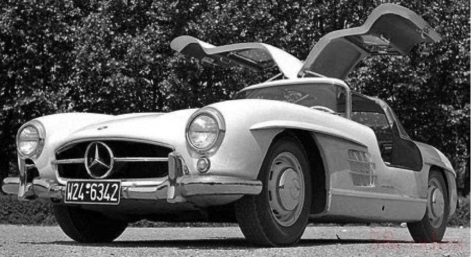鸥翼门:奔驰300SL 当年用轻合金钢管焊接成底盘的骨架,但骨架的侧梁过高,这就没有办法布置传统车门,工程师被逼无奈发明了鸥翼门