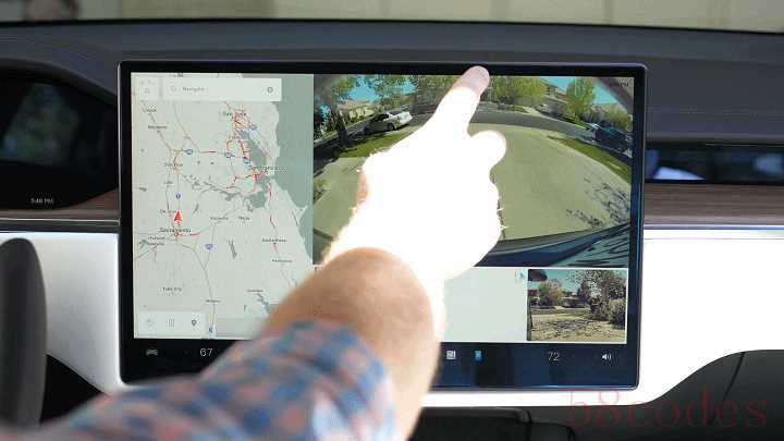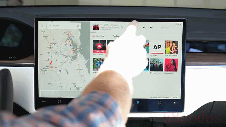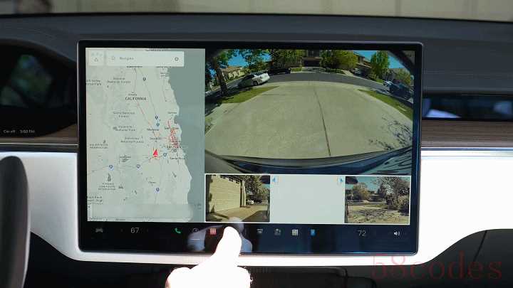 至于没有换挡杆怎么操作车辆,特斯拉早就想好了解决方案:触屏换挡。向上滑动左侧小车 logo 即为前进,向下即为倒车,系统会自动切换到对应的挡位上,并呼出倒车影像。停车时,点摁屏幕左上角的 P 键即可驻车。