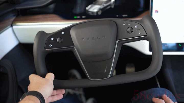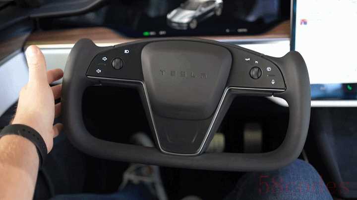 最直观的就是 Yoke 异型方向盘,和 Model 3/Y 类似的悬浮式方型中控屏取代了立屏设计。不过 Model S Plaid 依然保留了仪表,得益于方向盘设计,仪表盘的视野不再受到影响。