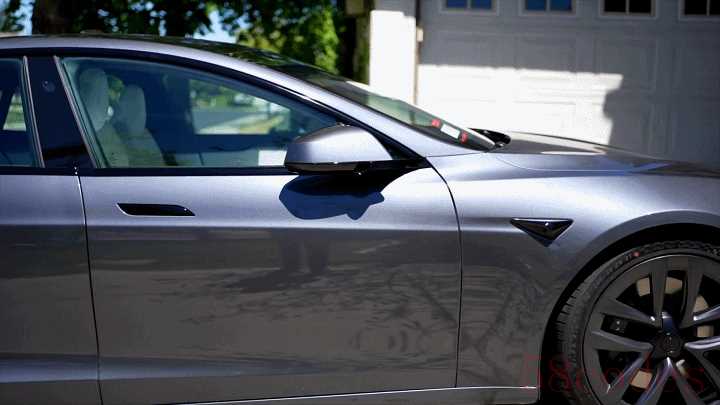 首先,Model S Plaid 的隐形门把手采用亮黑配色,既和 Model 3/Y 的哑光灰有所区别,更是和老款 Model S 的亮面镀铬完全不同。亮黑色往往更能够代表性能,彰显运动。
