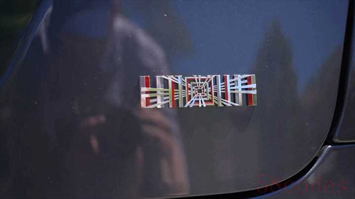 其次是尾标,Model S Plaid 取消了尾部的字母标,取而代之的就是一个「格子」logo,非常简练。