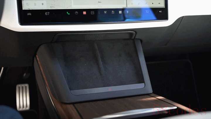 为了照顾后排乘客的互联需求,Model S Plaid 还放了一块小屏,分辨率虽然不及前排屏幕,但观感还算细腻。