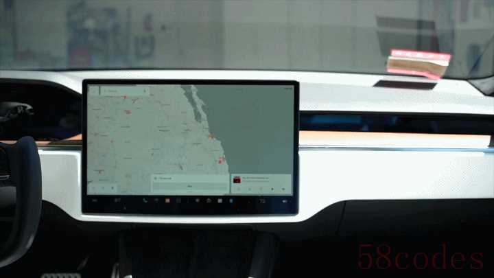 新车的 UI 和 Model 3/Y 有所不同,新系统非常推崇分屏式的交互体验,用户可以自由拖动屏幕上的导航、音乐、影像等等板块进行分屏显示,调整不同区域的显示优先级。