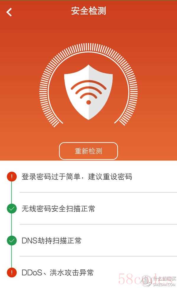 3、时常使用APP里面检测功能检测,发现异常一定修改WIFI密码以及管理密码。
