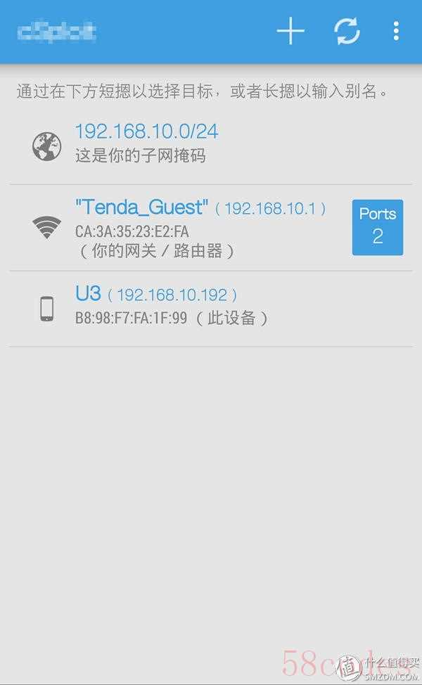 通过与主人孩子打成一片,所以得到了密码,成功连接WIFI。熊孩子决定玩玩一些有意思的,所以他百度下载了一款无线渗透软件。扫描WIFI内网,结果扫描到所有连接的客户端以及扫描到路由开放的端口。(测试时候误连5G,以因为开放端口完全相同所以就不改了)