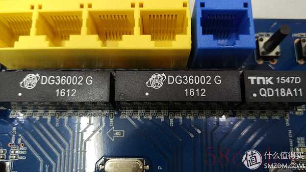 三个DIP网络变压器:两个晟雅泰 DG36002G,一个讯康 QD18A11