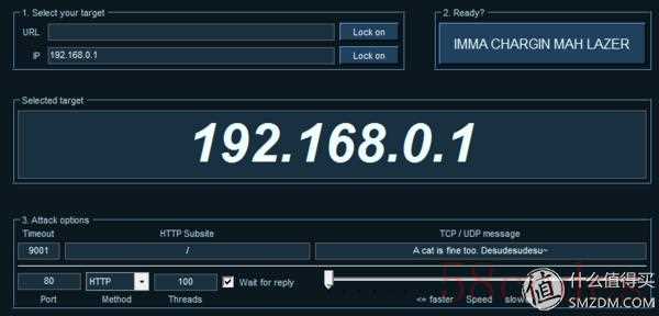 笔记本通过网线与AC9 LAN口连接。使用LOIC进行简单的TCP/UDP/HTTP Flood Attack