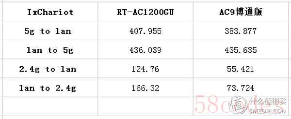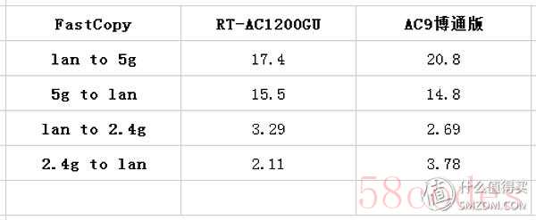 除了lan to lan非常微弱落后,华硕AC1200GU于其他项目均全面领先,尤其是无线接收能力领先不少。