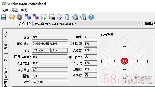 测试软件WirelessMon,路由器放置客厅,电脑放置主卧。