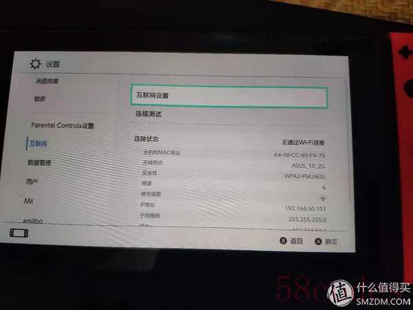 日版NS成功通过无线WiFi连上华硕RT-AC1200GU。
