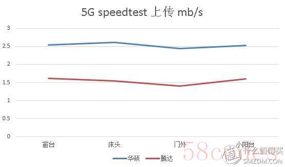2.4g WIFI主要为了覆盖范围,因为穿墙能力强,但速度慢所以都是留给智能家居设备用吧。而5g WIFI速度快才能满足主要设备的上网需求,所以重点测试,为保证结果公平公正,连续测试5次取平均值。