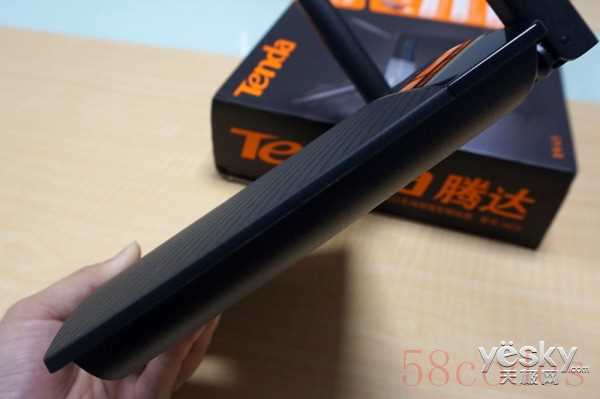 从包装上来,保持了腾达一贯智能路由的一贯风格,硬纸盒设计,左侧为精美的产品美图,让用户清晰的了解产品的外形特征,右侧则集中显示了该款产品的亮点,通过超强的覆盖性、绝佳的千兆网口、智能的健康绿色来描述它的与众不同。