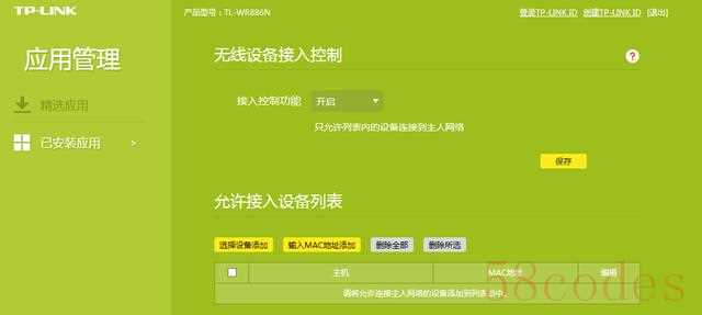 还是在路由器的设置页面,无线设备接入控制里,开启和增加MAC地址。仍然以TP-LINK为例。